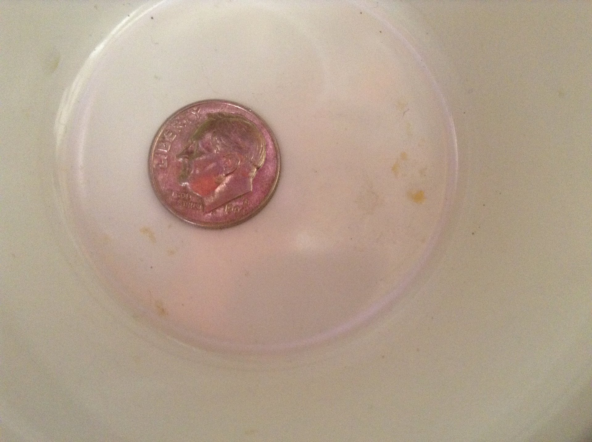 The easiest way to calculate the percentage would be to mark a piece of paper representing the gap from the outer edge to the inside of the rim at its widest point. (In the case of this coin, it would be about 8 o'clock.) Then continue making more hash marks (l) of the same width on the paper until you have spanned the remainder of the coin. Count the number of hash marks from the inner edge of the rim across the coin to the outer edge of the opposite rim. Divide this total into one (1) and you have the percentage. Chris
