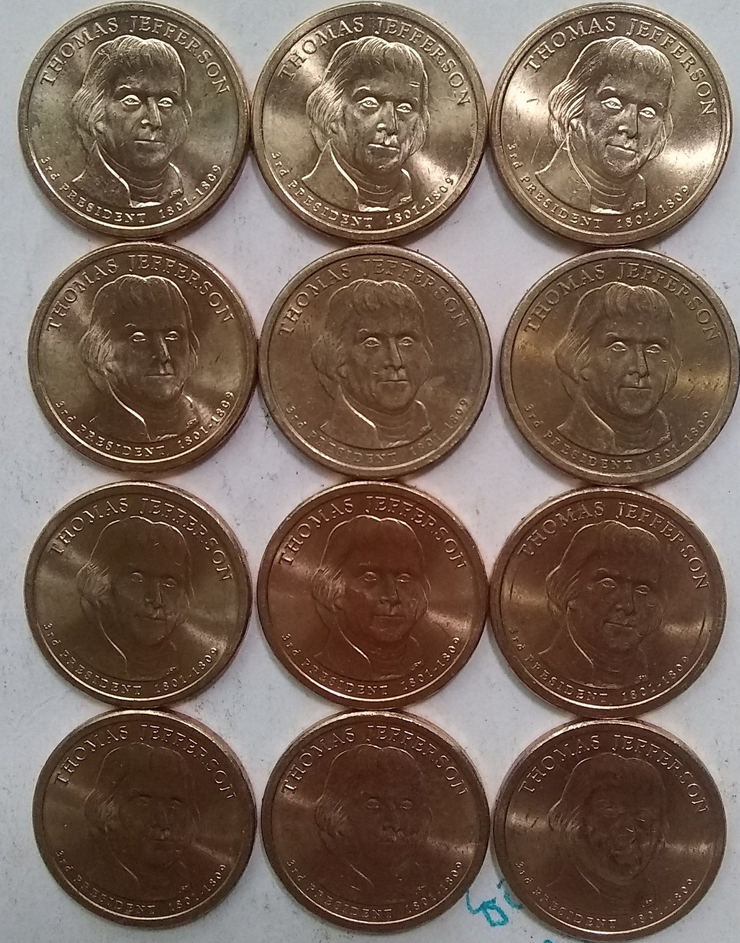 The company producing the bottom 2 were honest in their descriptions, although they used designs of important coins. They said they were replicas and gave the composition as copper and copper-nickle covered in a layer of gold. The gold is about the thickness of the gold wrappers on very expensive chocolates , maybe a dollar or two of value. But pretty, Jim