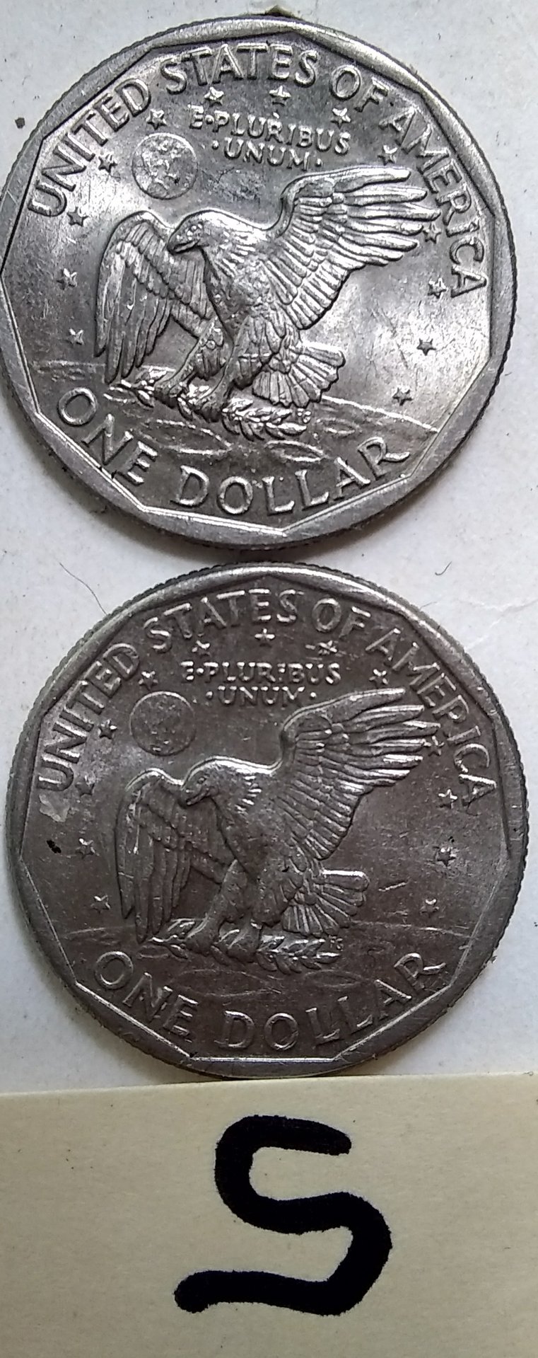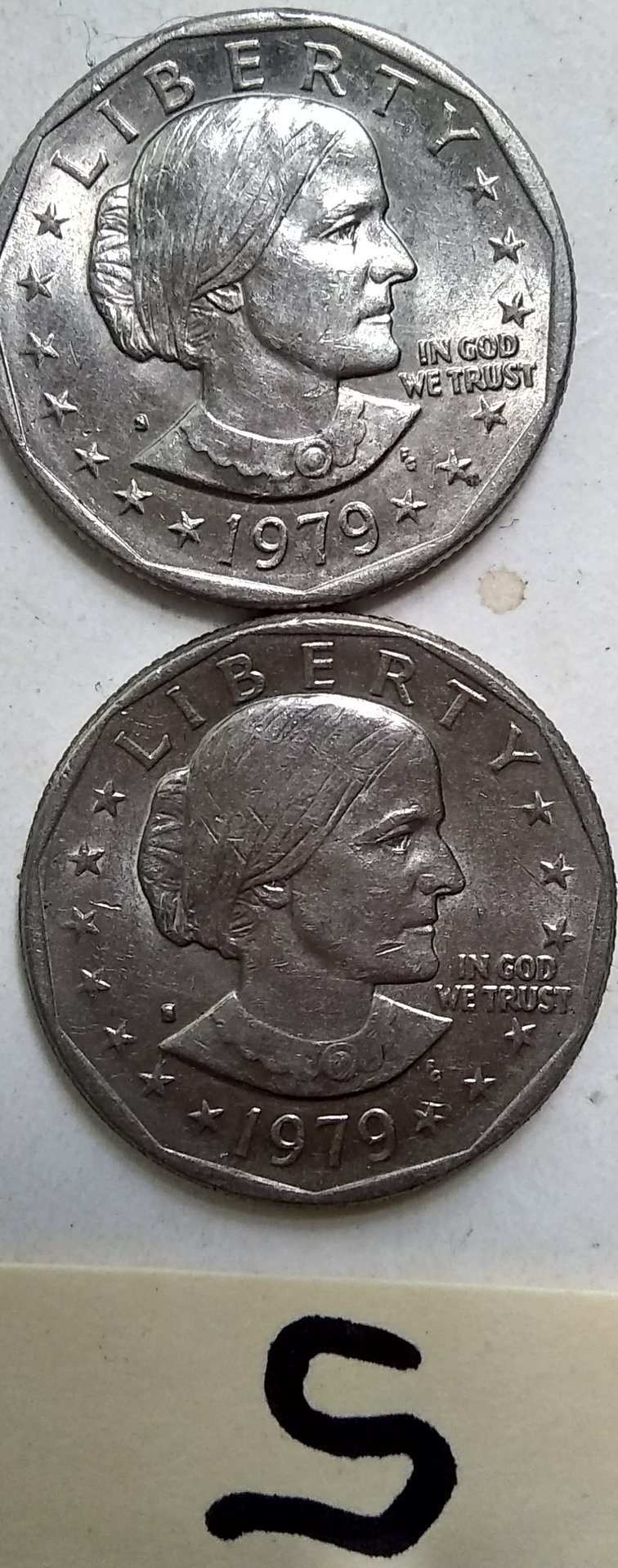 I think I got a double pic on last post. I was looking at sue b and came up with two s's. Here they r. I know the pics r not the best but what do the s go for. Didn't look for dates yet