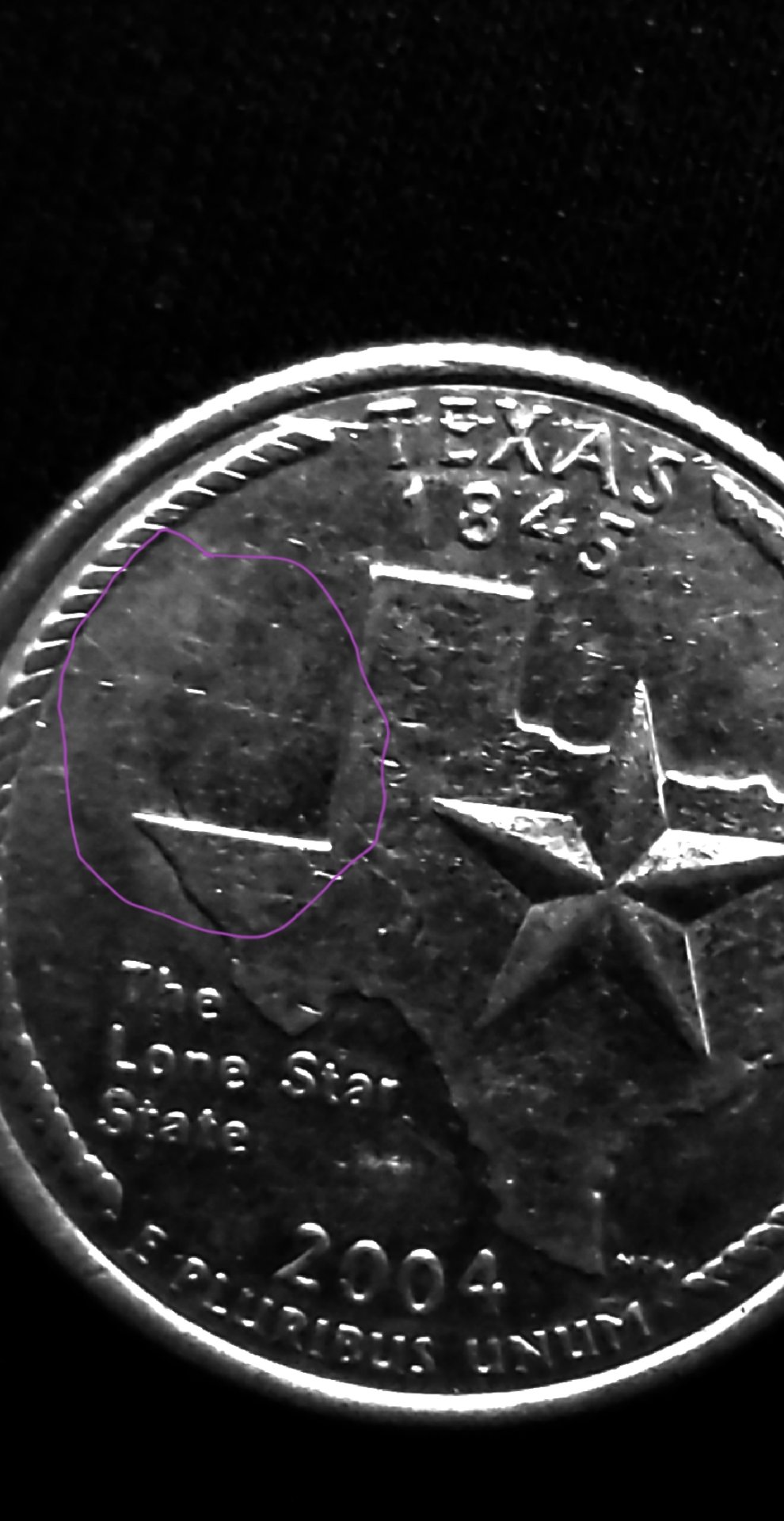 There is another shadow of some sort of the panhandle on my 2004 Texas state quarter..is this common and also in the same area a crack which I'm also unsure of and would whole heartedly like some feedback or information on please new to coin hunting.thx
