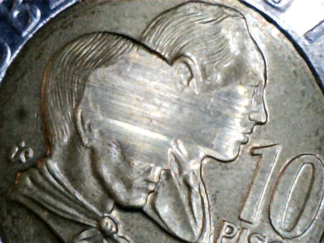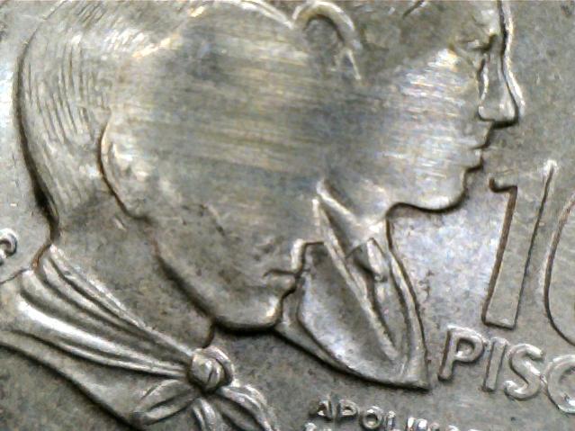 I think in this case it is just worn. However, usually graese filled dies will show no lettering at all. A weak strike, you would see the intended letters, just less bold.