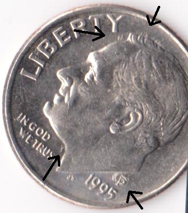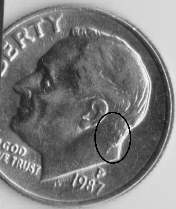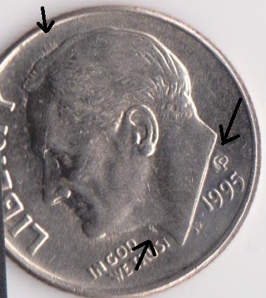 I have 2 dimes with noticeable errors. The first looks like it has another ear maybe, and the second has something over the P, in front of his throat, and extra spiked hair! I tried taking different pictures to capture the errors the best I could. Please let me know what you think. Thanks, Mike