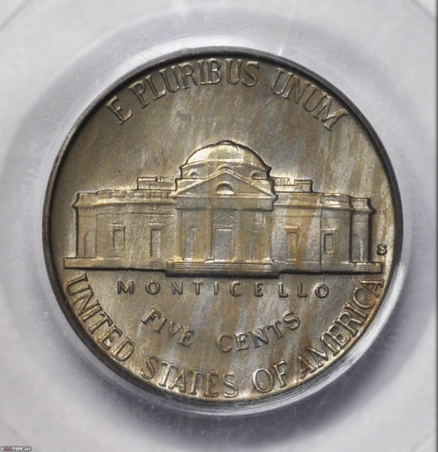 Paul can answer better, but I see that type of toning not rarely on Jeffs from the 40's and rarely 50's. IDK what caused it. What does a nice little 40s like this sell for typically nowadays? I am wondering just what "premium" there was for the toning, as the coin is a nice little early Jeff. I don't detest the toning, but don't think its exceptional.