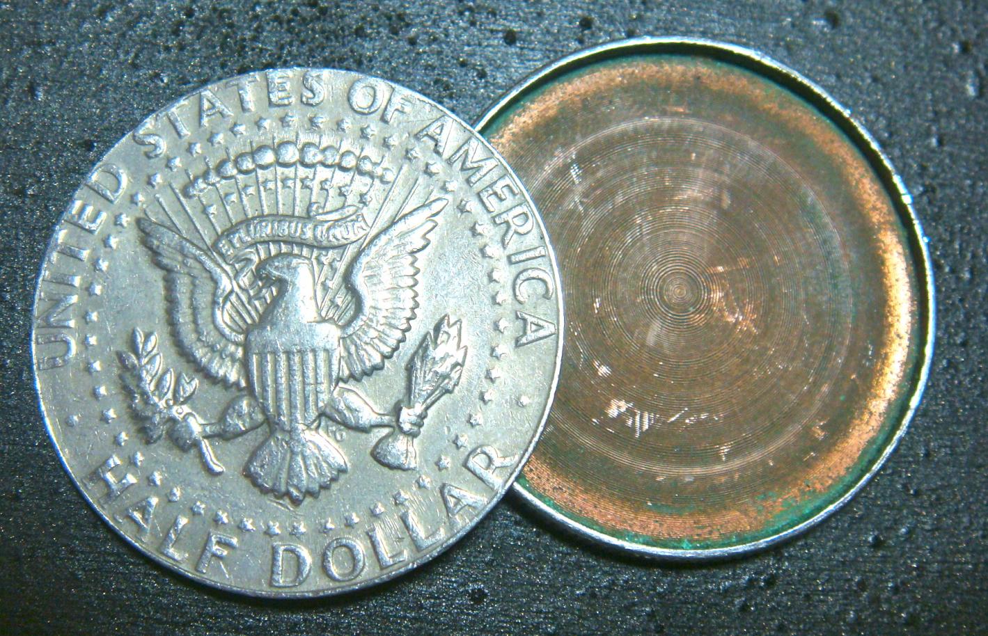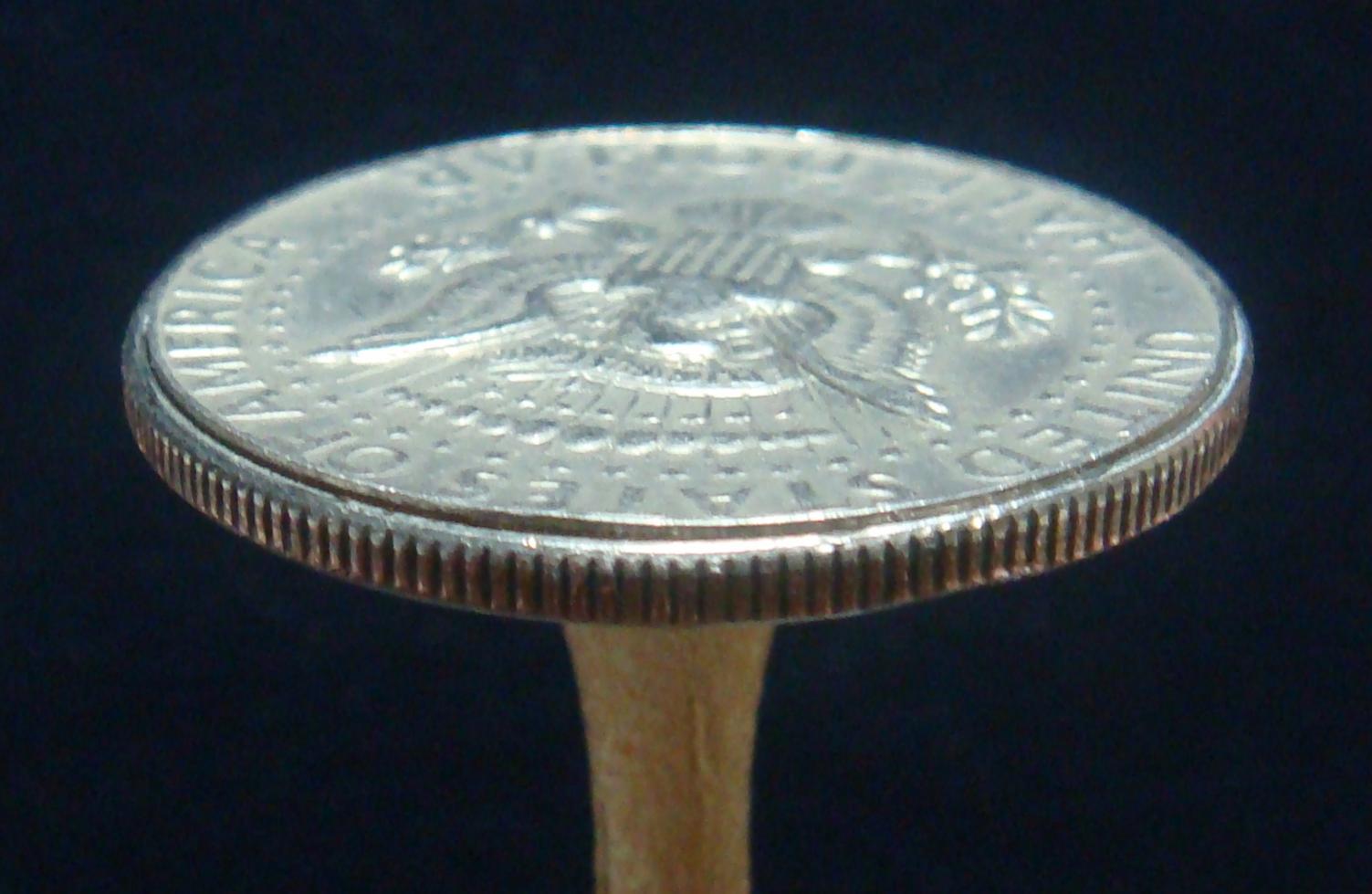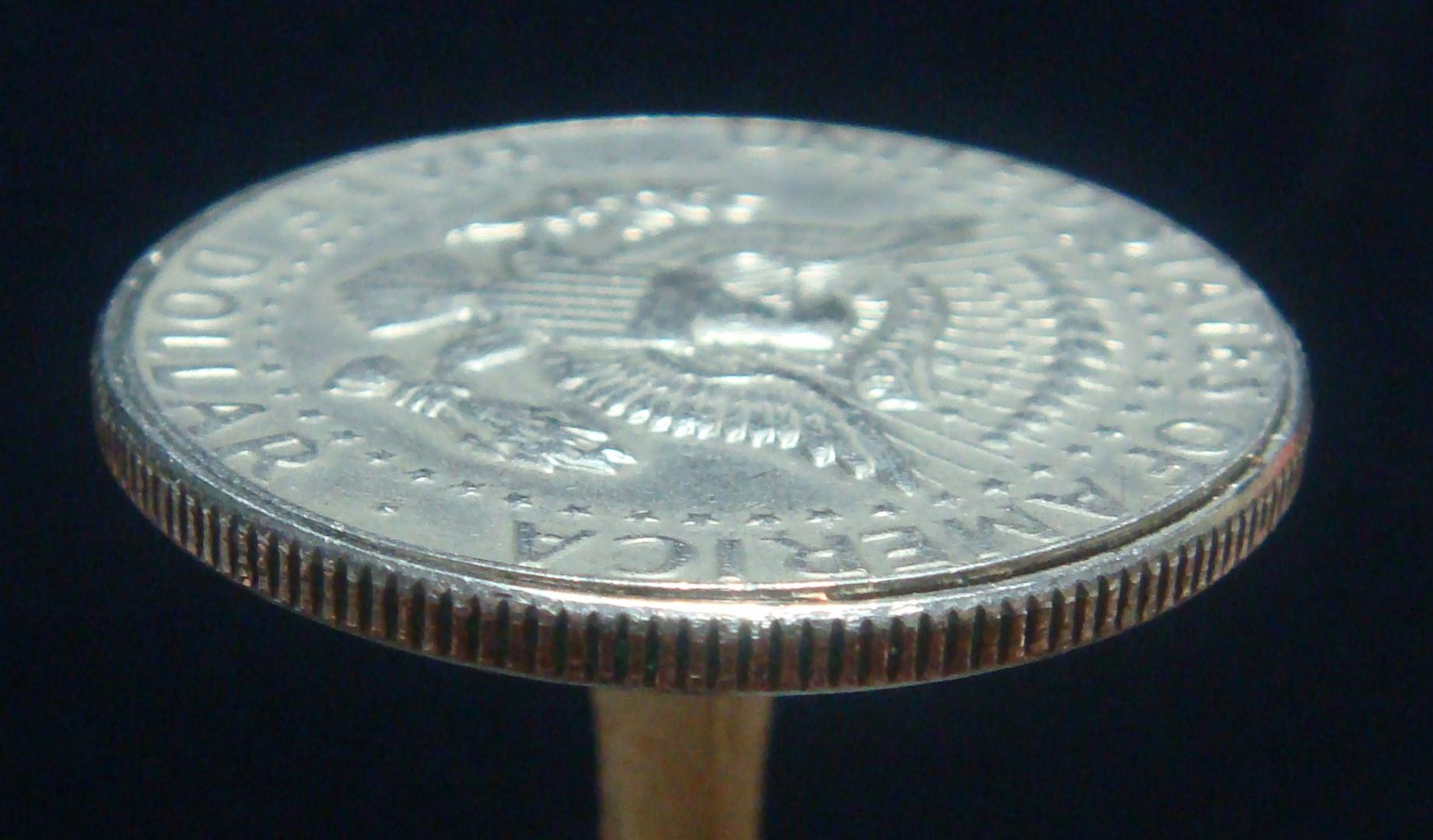 You were correct! Here is what I found after some prying... Thank you once again for all of the tremendous help. I shall be keeping this as my first "magical" coin experience. - Justin