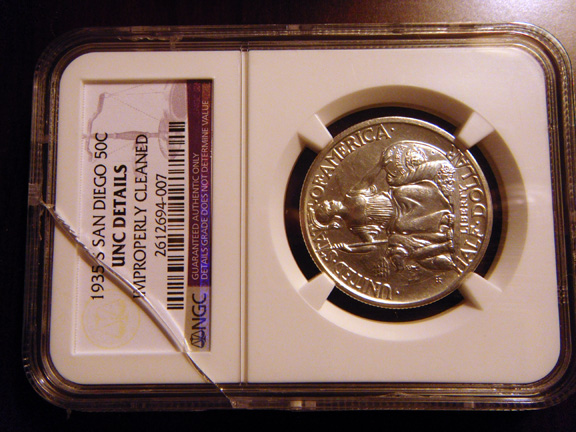 Well, I kind of agree with what you all say....but, when I package the coin I not only put the slab in a plastic bag but wrap that bag in bubblewrap and put it in a bubble envelope with peanuts to cushion it in transit. Yeah, most people would say that's above and beyond what you need to do, but that's what I do. The gripe I have is instead of just putting a new label on the envelope and returning it, he cuts the envelope in half, doesn't even really wrap the bubblewrap around the slab and ships it off the first time with to and from and the same bar code from when I shipped it so after it floated back and forth for a week from my town to his about 4 times it got redelivered to him because the PO machines kept reading it going to him. Then he attaches a new sort of label and resends it I am sure without checking the coin....or maybe he did and saw it was damaged and didn't want to say anything. Either way, whether it was damaged the first time he sent it or the second, his repackaging was not what it could have or should have been. True, I made the initial mistake and I have done it a few times and the coins were returned properly to avoid damage. Here's a pic of the worst side of the slab.