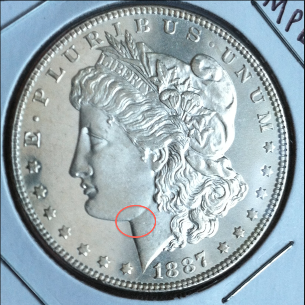 Hard to tell from the light is either a really nice au58 with just slight wear on the hair or a slightly weak strike and a good solid ms 65 I can't see any major dings the strike is the only thing I see holding it back from 66