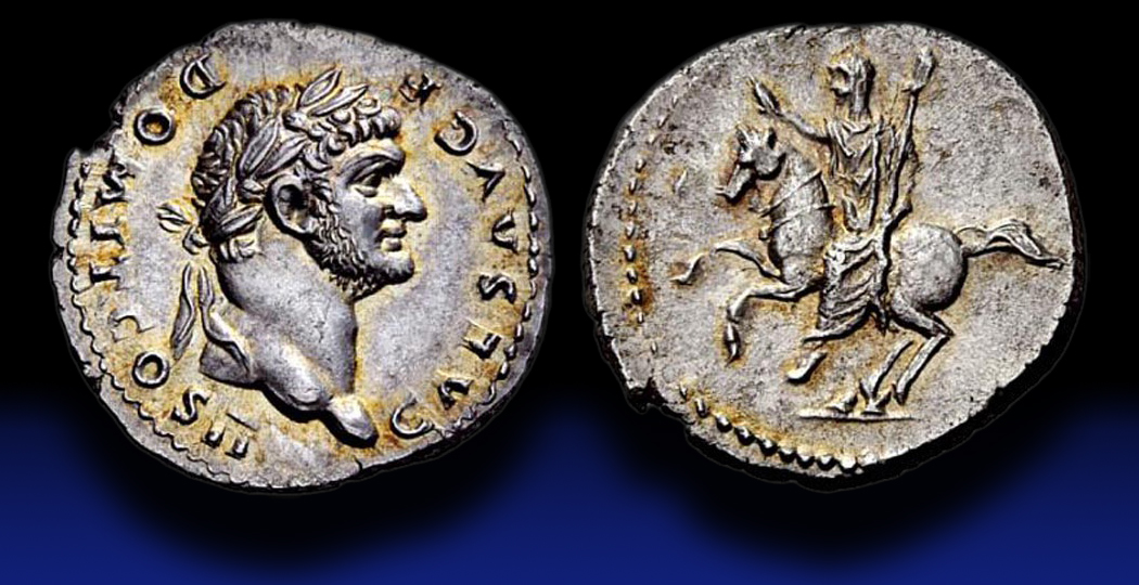 IMP CAES DOMIT AVG GERM COS XII CENS PER P P, laureate bust right, aegis on shoulder / FORTVNAE AVGVSTI, Fortuna stg. left w/rudder & cornucopiae, S-C across field.