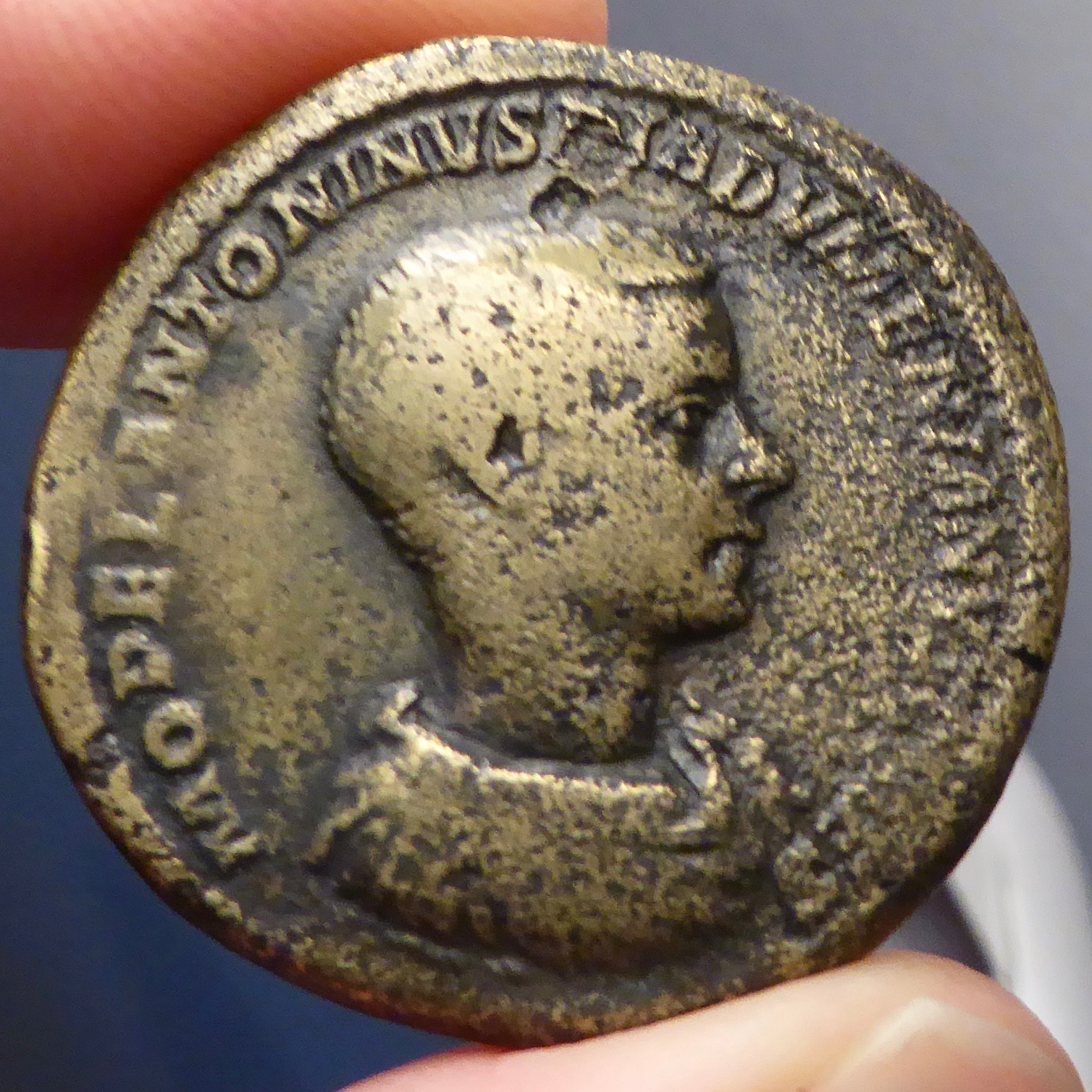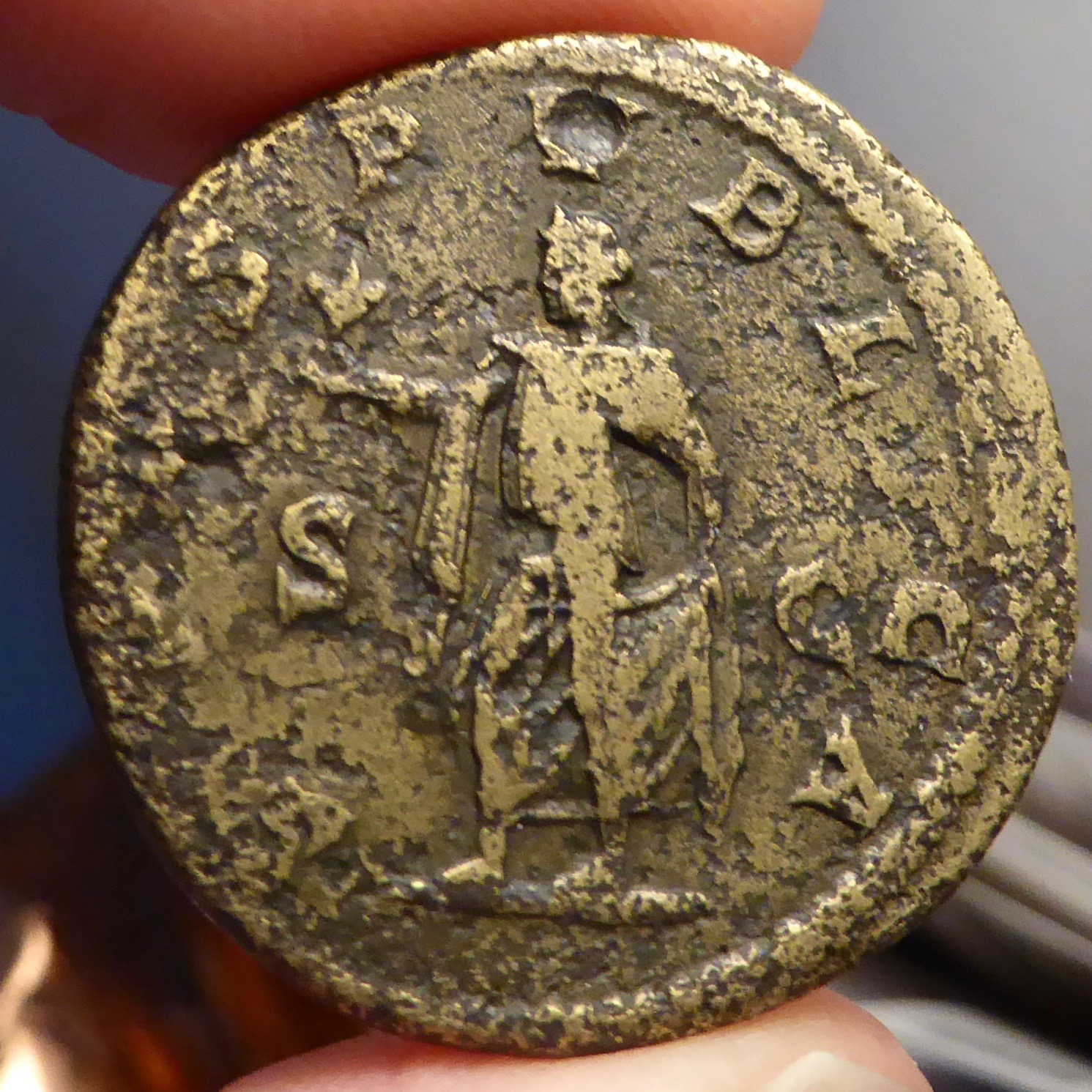 My rarest coin (I posted this before but here are some new pictures): CORNELIA SALONINA AVG - Diademed and draped bust of Salonina right, her hair in ridges and looped in plait on neck and up back of head PVDICITIA SC - Pudicitia standing left, drawing out her veil with right hand and holding transverse scepter in left Sestertius, Rome 262 11,64 gr / 27,98 mm Göbl 490y - the second known specimen and the final Sestertius type struck for Salonina (the obverse die was also used for unique silver and bronze medallions)