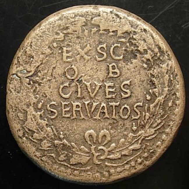 Got one more: TI CLAVDIVS CAESAR AVG P M TR P IMP - laureate head of Claudius right, traces of oblong countermark PROB in front of emperor’s neck (according to Sear) EX S C / OB / CIVES / SERVATOS in four lines within oak-wreath Sestertius, irregular mint, probably in Gaul (Lugdunum?), 43 aD 34,75 mm / 23,49 gr RIC 96, note; BMCRE 120; CBN 155 and pl. XXV; cf. Cohen 39; Ernesto Gutierrez Guinea "El Valor de los Sestercios" (this coin) ex Auction Cayon Subastas July 2016, 06.07.2016, Lot 52 (485 USD incl.fees and postage) According to David Sear, the style of the engraving on this specimen is not up to the standard of the regular issues from the mint of Rome and it therefore belongs to a large class of imitative coinage possibly struck in Gaul with government sanction in order to provide additional currency during the military build-up prior to the invasion of Britain in AD 43. Although it is only faintly discernible, this specimen seems to have a weakly applied countermark placed before the emperor’s neck on obverse. This may read “PROB” which would indicate that the coin had been approved (probatus) to remain in circulation despite its irregular appearance. This and other countermarks are well known on base metal coins of this period, their purpose being to reauthorize the currency of coins that might otherwise have been deemed unsuitable for circulation due to excessive wear or their unofficial origin.