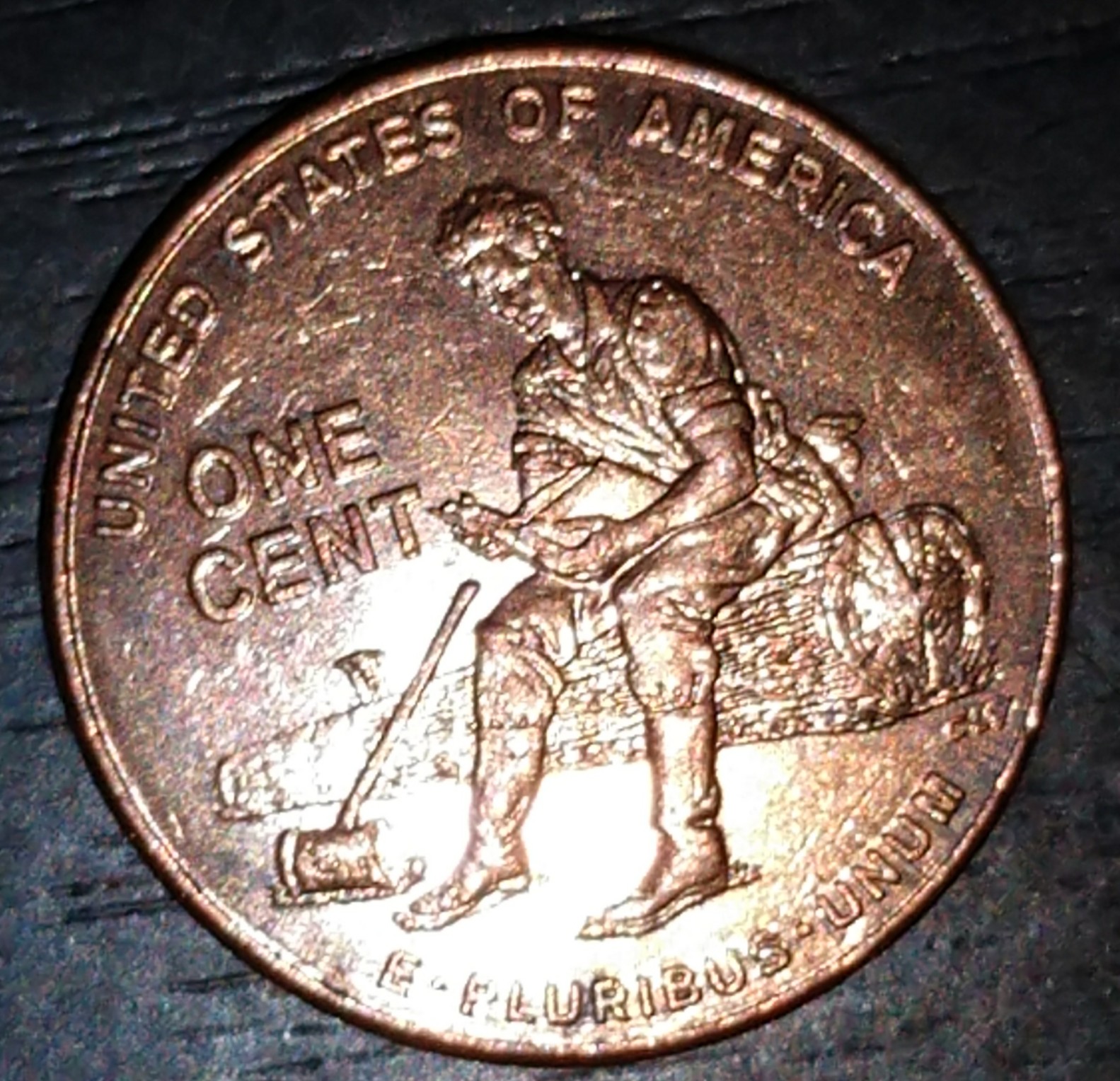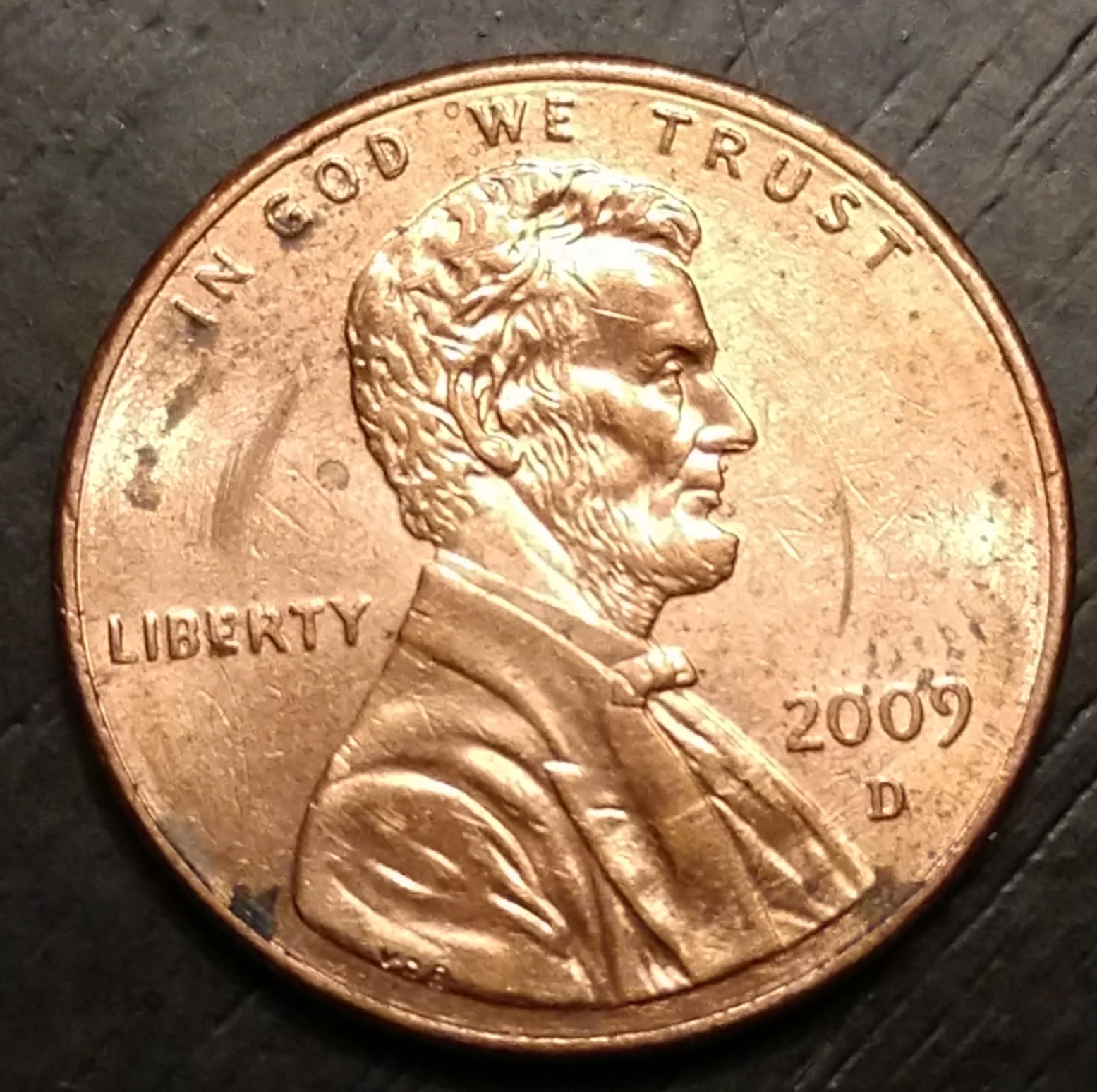 The Obverse (front of the coin) shows a circular mark. This occurs when a Coin Wrapper machine is used to crimp the end of the wrapper. The Reverse (back of the coin) shows wear and tear