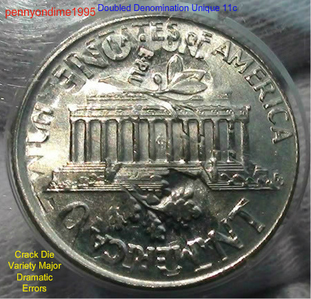 This coin introduced me inside of NUMISMATIST WORLD! A Doubled DENOMINATION 1995 Two Full dates Obverse, 2 LIBERTY, IN GOD WE TRUST,VDB,P Mintmark,UNITED STATES oF AMERICA,ONE CENT,ONE DIME, E PLU, FG INITIAl, LINCOLN MEMORIAL BUILDING split in HALF as a CRACK DIE VARIETY and SKULL BREAK obverse with 2 GREAT PRESIDENT IMAGES Pres.ABRAHAM LINCOLN ( penny)as Number 1 and Pres. FRANK DELANO ROOSEVELT (dime) as Number 2 the two TOP Presidents voted by Presidential Historian Society among 41 Presidents served in oval office ( White House ). Here's the Picture and Coin Fact Encyclopedia/PCGS. Last offered received on my eBay lot on Jan 12,2012 09:10 Am Easter Tme from eBay ID, Location Hints is in Disneyland World of Seven Million US Dollars.[video=youtube;vhb05-fBcPU]http://www.youtube.com/watch?v=vhb05-fBcPU[/video]