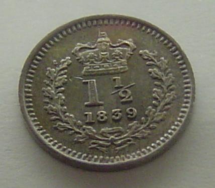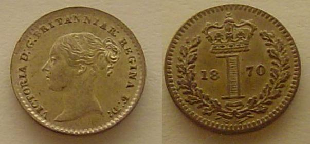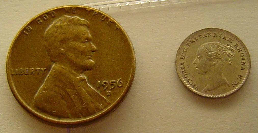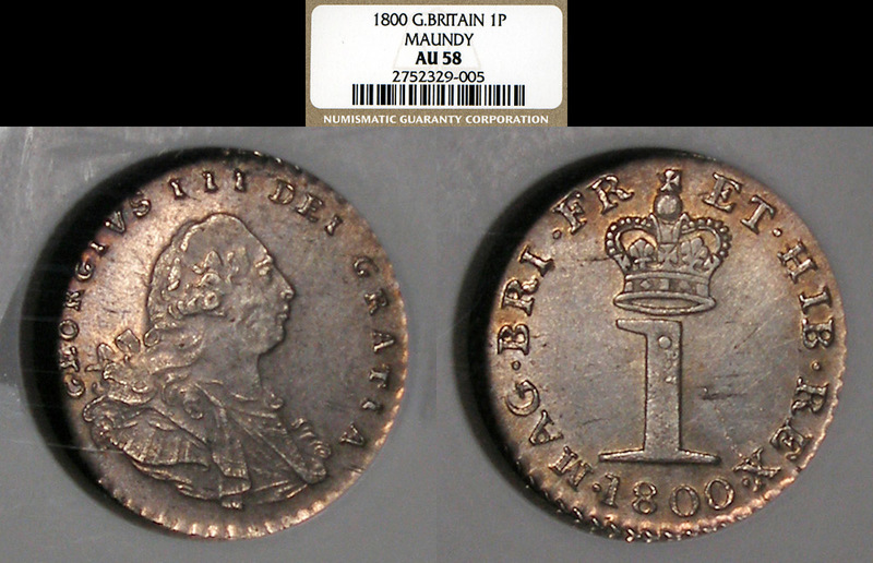 Maundy etc. Very cool Fanam posted, I always wanted one of them.... Also wow doug that is certainly a small one. Well, when I think of small coins, I usually think of British Maundy coinage. Here is a photo of a Victorian 1870 Maundy 1d next to a Lincoln cent to show size. As well as one of the obv and rev. This maundy one pence in .925 silver weighs 0.4713 grams, less than half of a gram, with an Actual Silver Weight of .0140oz. And the next photo is of my NGC AU 58 1800 George III Maundy 1d, I don't know the weight of that issue, but I assume it to be somewhat similar to the 1870 1d in weight. Also since Maundy coins weren't exactly circulation coinage, I include some photos of a British 1 1/2 pence or 'threehalfpence' issued for use abroad, mine is from 1839. I dont have the exact weights and such but it is .925 silver, and weighs around 0.7grams.... it also has a slightly prooflike portrait, hard to photograph them all... I'm trying to think of any coins I have that are smaller.... I have a number of Swedish and Danish 10 ore, as well as Guatemalan 1/4 Reals but I believe they are all a bit bigger than these...hmm...