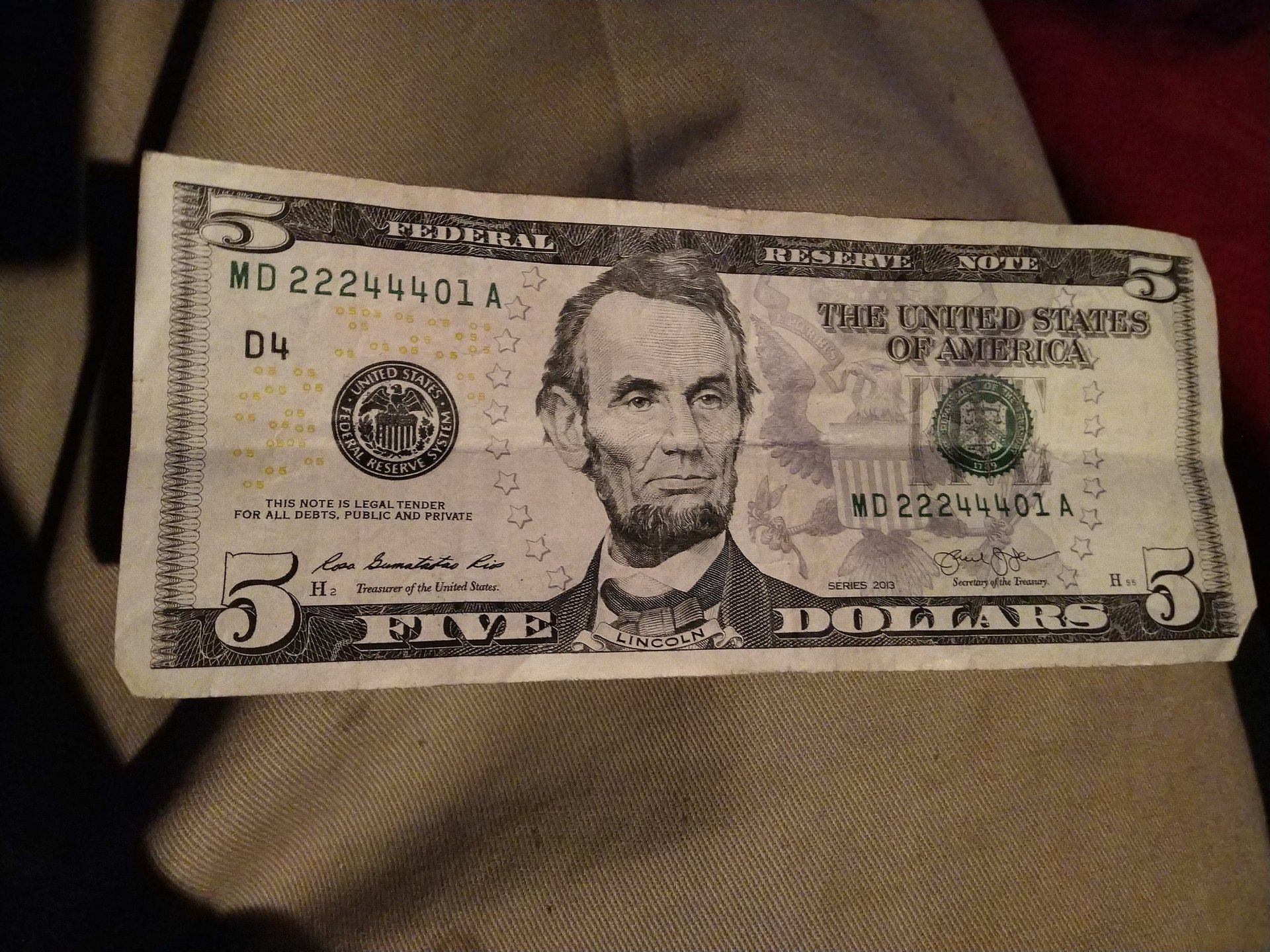 What's the Value on a 2013 5$ Bill With Unique Serial #