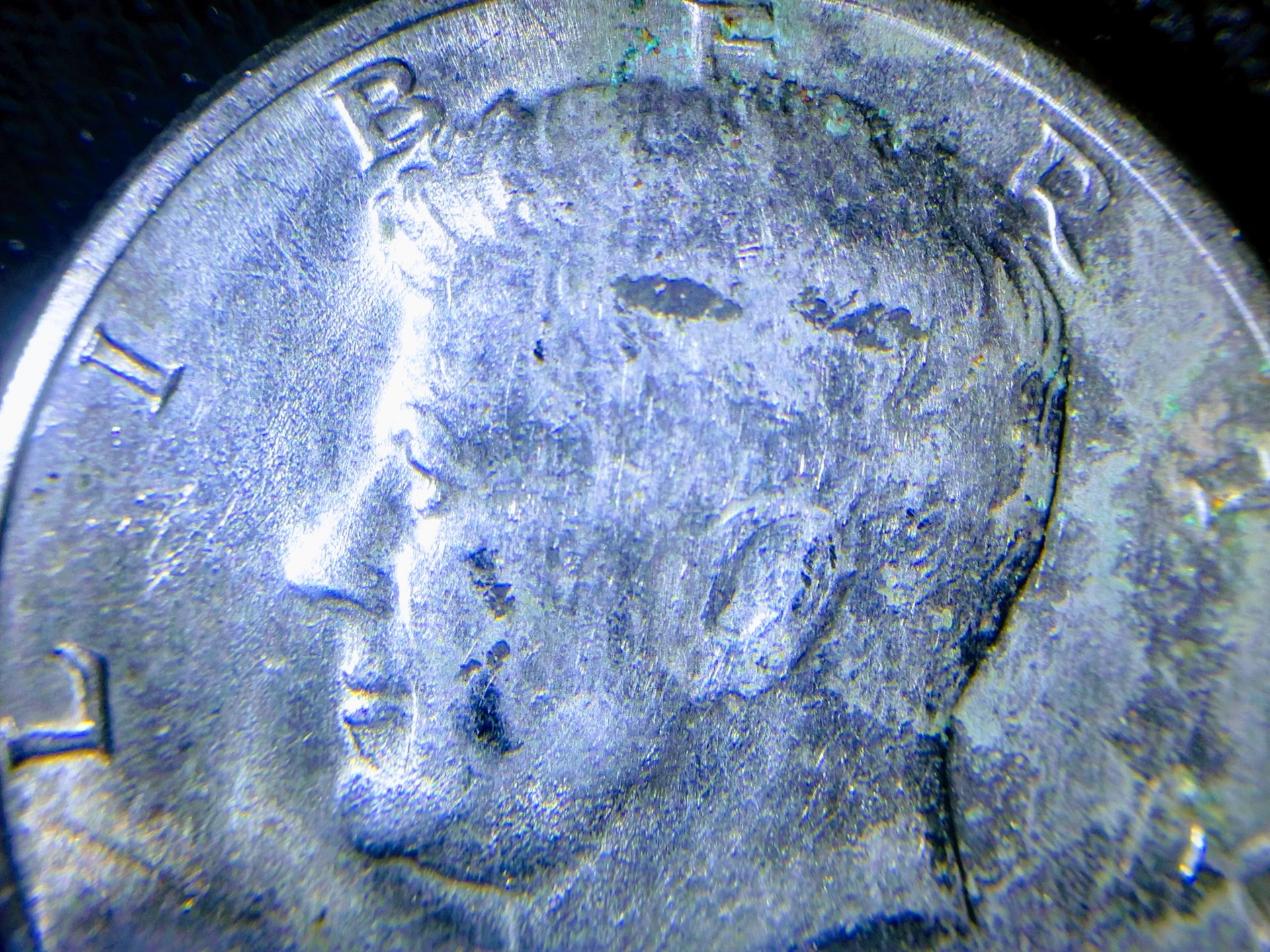 Either a weak strike, with a deteriorated die, also it has been heavily cleaned. Or, I know that there are fake Kennedy's out there. It's hard to tell from the photos.