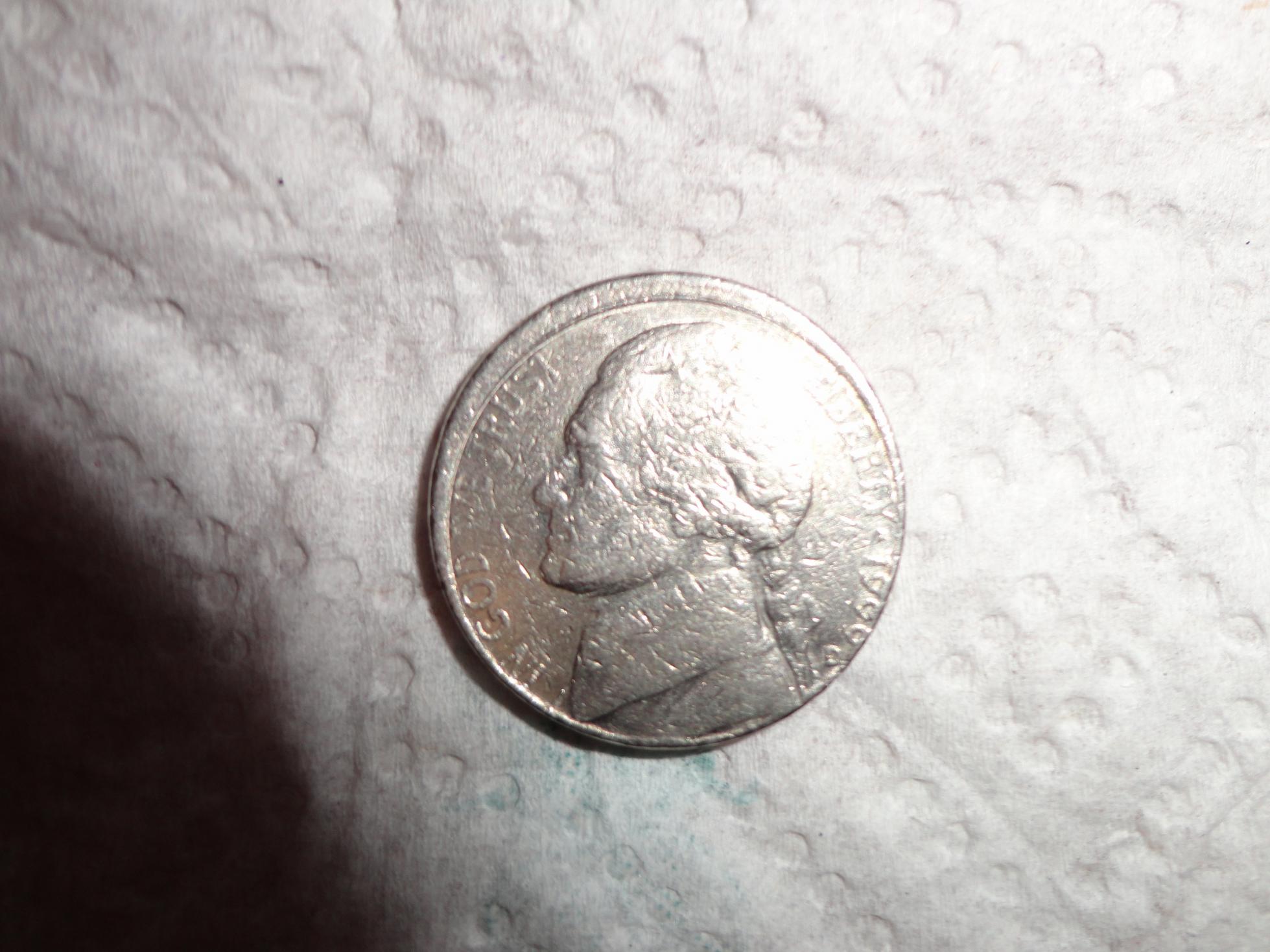 That coin does not have mint luster at all. It is a well circulated MAD that has been damaged and is only worth 5 cents. Even high grade true off center modern Jefferson Nickels are only worth less than $50. Take a look at the links below and see the difference in quality. 1999-P Jefferson Nickel Off Center NGC MS66 FS $38 (1/2012) 1999-P Jefferson Nickel Off Center NGC MS65 FS $15 (10/2011) Stop wasting your time with that thing and throw it back in the pile, it is worthless.