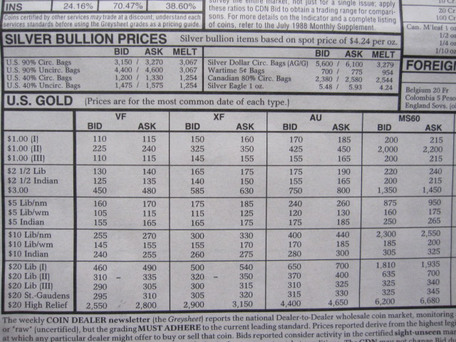 Yeah, paper publications don't do a very good job of capturing extreme volatility. I was just looking through old 2011 and 2012 coin guides at the local show -- $7.50 for common silver halves in the 2011 guide, $14.50 in 2012. And I bought so much stuff in 2012...