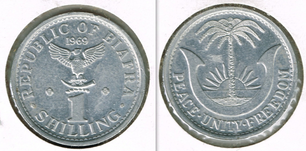 I don't collect most post-WW2 world coinage, so that rules out a lot of post-Colonial coinage. I'll make an occasional exception for an interesting design, though. I do like Chinese coinage a lot, but the high volume of fakes/replicas discourages me from buying it from most sources these days. I also try to avoid coinage from actively disputed areas where I might be inadvertently funding an ongoing civil war by buying them. Similarly, I wouldn't want to collect North Korean coinage. Here's an exception to my modern disputed territory rule, from Western Sahara. And for coins from earlier civil wars, I don't worry about funding long-ended conflicts. So here's a coin from the failed Birafran war of independence.