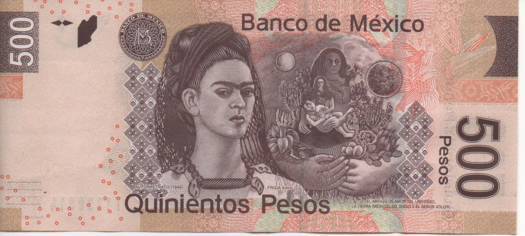 I didn't realise Frida Kahlo had been featured on a banknote. (Her husband Diego Rivera is featured on the obverse)