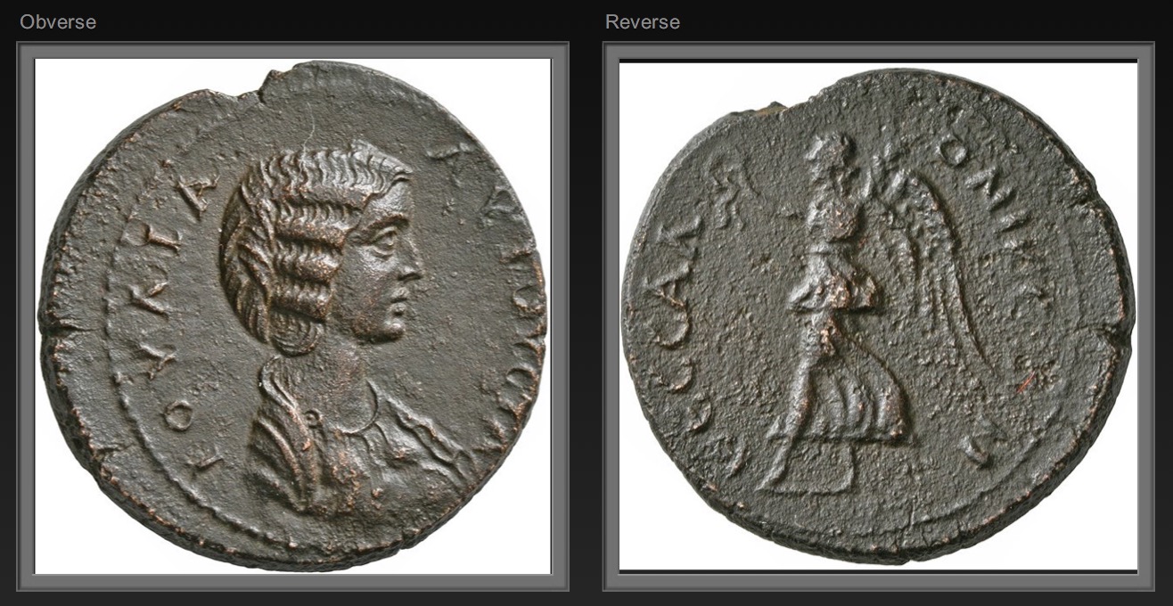 To the lovely portraits of Julia Domna posted by @dougsmit and @arizonarobin above, I would add this coin from Thessalonica: