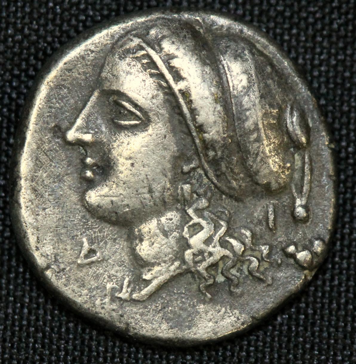 Here she is , I have no clue on ancients so any help is greatly appreciated. Appears to be silver ,It weighs 2.6 grams & is 14.7 mm at the widest point. Thanks - J