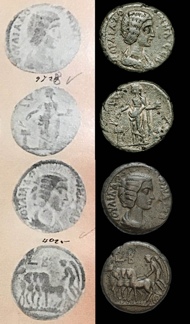 As always @dougsmit is 100% correct here. And I've learned the hard way... I'm still a relative newb, and have certainly been guilty of the copy paste, save time, habit. And it can taste a lot like humble pie. At this point, if I've won a coin that lists a source I don't have I cross check on AC search to see if I've got a match. But even this doesn't guarantee proper identification, especially if you are checking coins from the same auction house (I've been putting off doing a write up, but will say a VERY reputable dealer has misidentified the same coin type again and again). I'm getting to point where if I don't have the reference I'm leaving that out of my description. These are the best opportunities to learn. Knee Jerk reaction is top is too tough and must be good as the bottom is too good to be true (Wonderful coins btw). But upon further investigation, I'm seeing bubbles on the first coin that can be a sign of casting. And something else that I won't mention. As to where the second coin the only problems are, it's a beauty that's too pretty and I want... if it's the real one that is. Of course, I'm far more wrong then right when trying to spot fakes from photos. So, though my first inclination is probably correct, I'm going with the after thought due to the two observable possible signs of skull-doug-ery I see on coin #1. If you don't want to reply to all and have the time I'd appreciate an PM on which witch is which