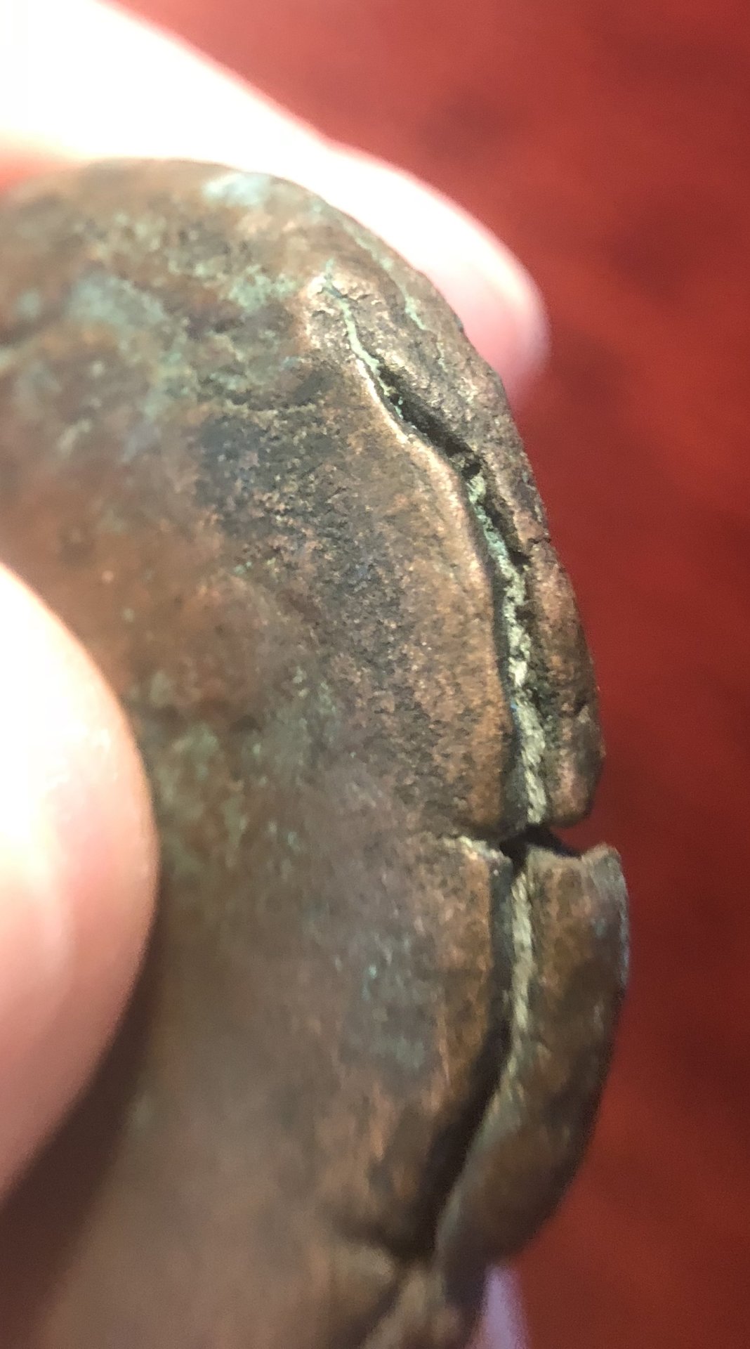 I’m sure I’m not the only one who’s noticed it. As I’ve become more interested in the coinage of Alexandria, with its interesting and sometimes bizarre imagery, not to mention the lovely feeling of a chunky drachm in your hand, I’ve also noticed that its issues seem unusually predisposed to bronze disease. Take for example this latest coin I acquired, which I am still in the process of treating. Thankfully the corrosion only covered the surface for the most part, but it arrived in a flip that was accumulating green powder at the bottom, and it left a powdery residue on my hands from just handling it. It actually added a nice highlight to the devices, but for its own good it is now soaking in distilled water due to its flakiness. Then there’s this, a product of the minting process at Alexandria, which has resulted in what appears to be a bronze disease sandwich. Thankfully it seems stable, but I don’t know how to treat it. There’s no way to clean it out, and for all I know it has a core of solid bronze disease. I even see coins that look diseased being offered at major auction houses, with no mention of the problem. Why is it that these coins which were mostly likely found in the same dry environment in which they were made are so predisposed to bronze disease?