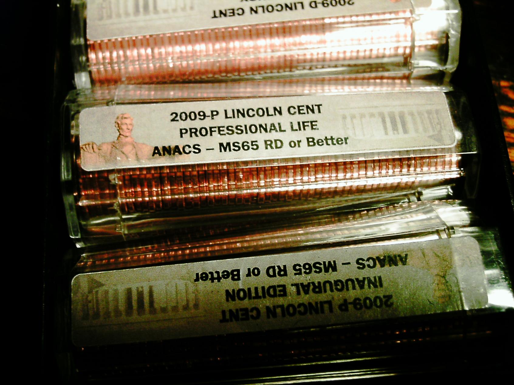 Every time you buy anything from one of my local dealers he gives you a raffle ticket for a monthy drawing. When I stopped in today I was told..."Great News you won!" What did I win you ask... Full 2009 Anacs penny roll set MS65+