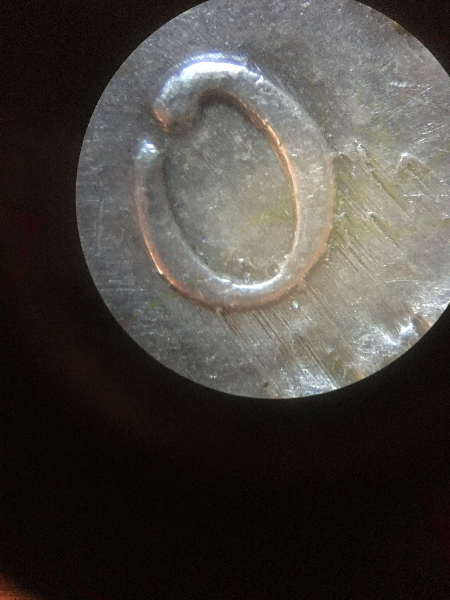 Let me also add this photo from my microscope, the 0 in the date. Odd marks around the numbers and letters near the edge, no idea what they would be considered.