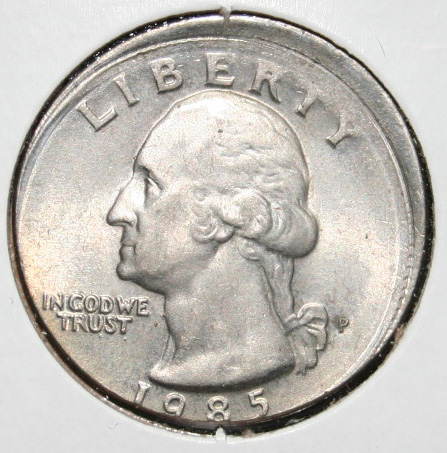 Its a 1985P Quarter Heres the front and back...the coin guy said it was 5% off but it looks to me a little more than that but I dont know.
