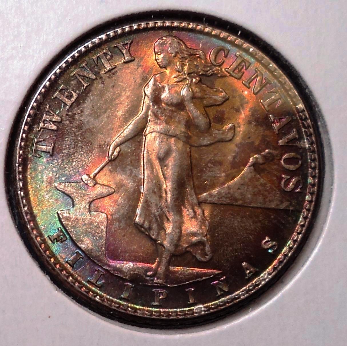 a nice even patination with age is fine but some of the "rainbow" toned coins look hideous, and they are extremely easy to articially create, i tried my theory by leaving a 2 pence piece in malt vinegar for 10 minutes............hey presto a rainbow toned coin.