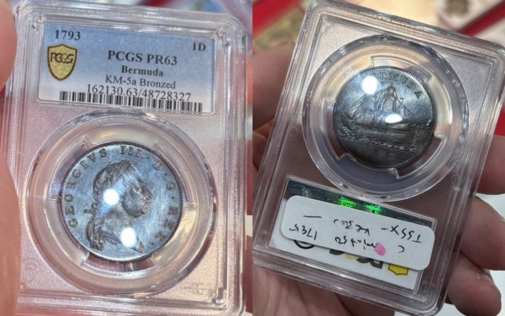 1793 bronzed proof penny from Bermuda. My earliest proof coin.
