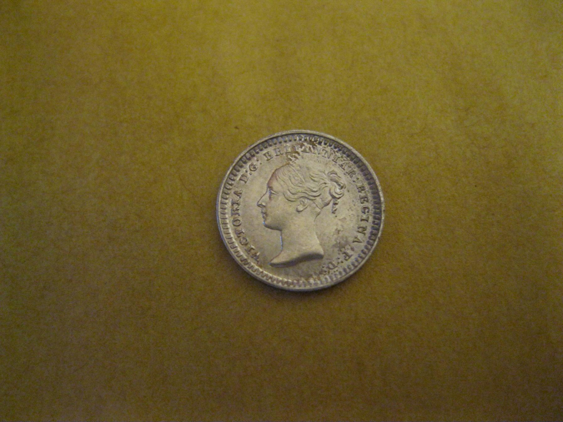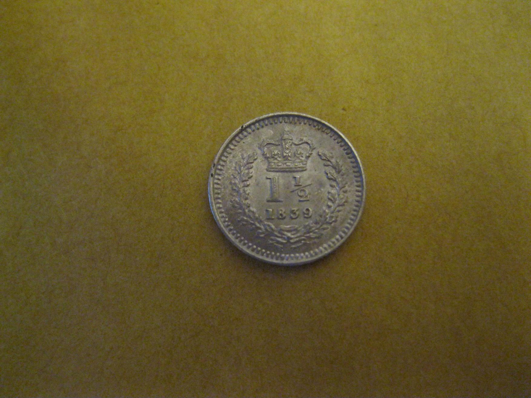 Smallest coin I have: 1839 British three half pence For use in the colonies.........the 1839 is quite a bit rarer than the 1843 and catalogues at approx 150 dollars in UNC....1840 is the rarest at about $300. Not much bigger than the size of a pea.