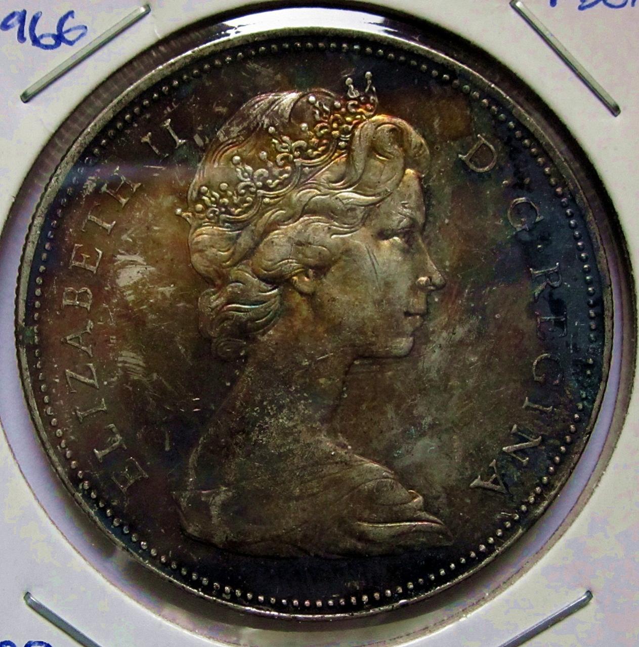The only Canadian dollar I have from the pre-Elizabeth II era is the one I just posted. I wanted to get some others when I was up in Canada, but for various reasons I didn't. I was able to get about a roll of mixed dollars like these, though, and I love the designs. The 1967 Canada goose is the first Canadian dollar I became familiar with, largely because of the hype that the "diving goose" variety was receiving in coin publications in 1967-68.