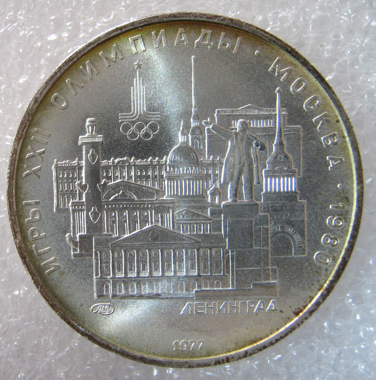 1980 Olympics, 5 (view of Leningrad) and 10 ruble (Olympic logo) from 1977.