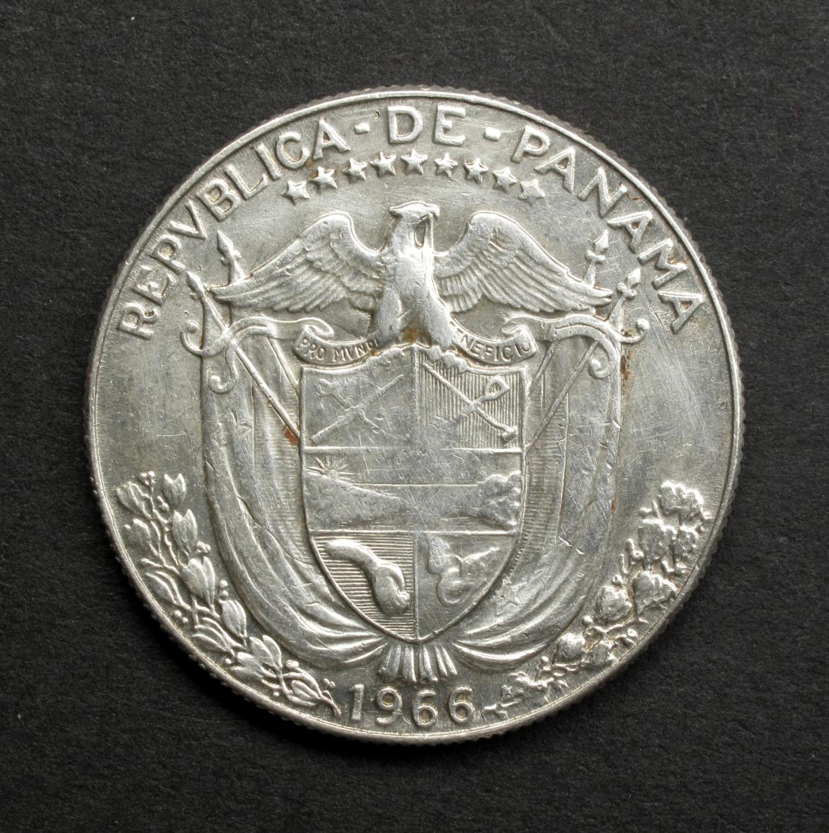 1966 half Balboa, 40% silver, mintage 1,000,000. Can't tell if it's the incomplete helmet rim or just worn.