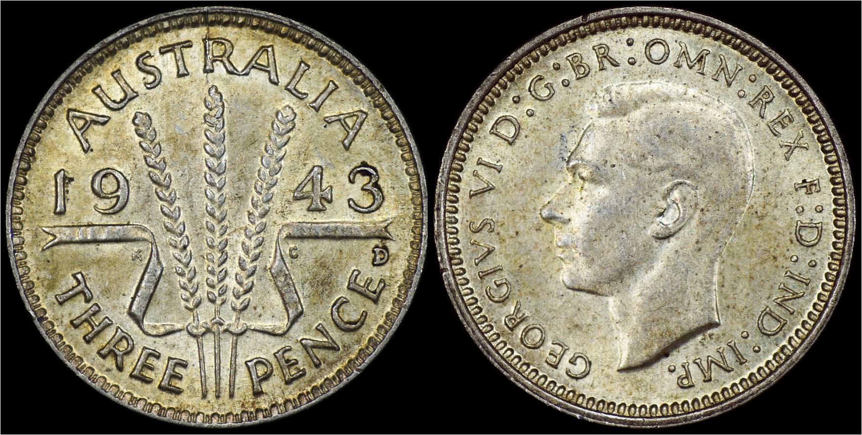 KM# 37 Australia 3 Pence 1943D (Denver mint),