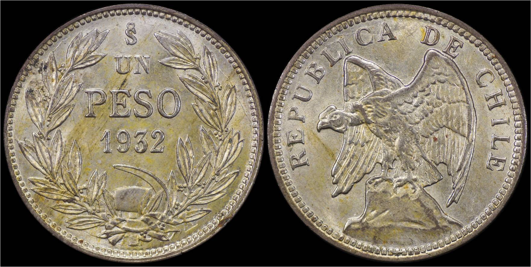 With this coin I can close out my 20th century Chilean peso collection for all years at best grades I could find. As common as they are, grades are normally low. Only three of these graded by NGC. KM# 174 Chile 1932 1 Peso