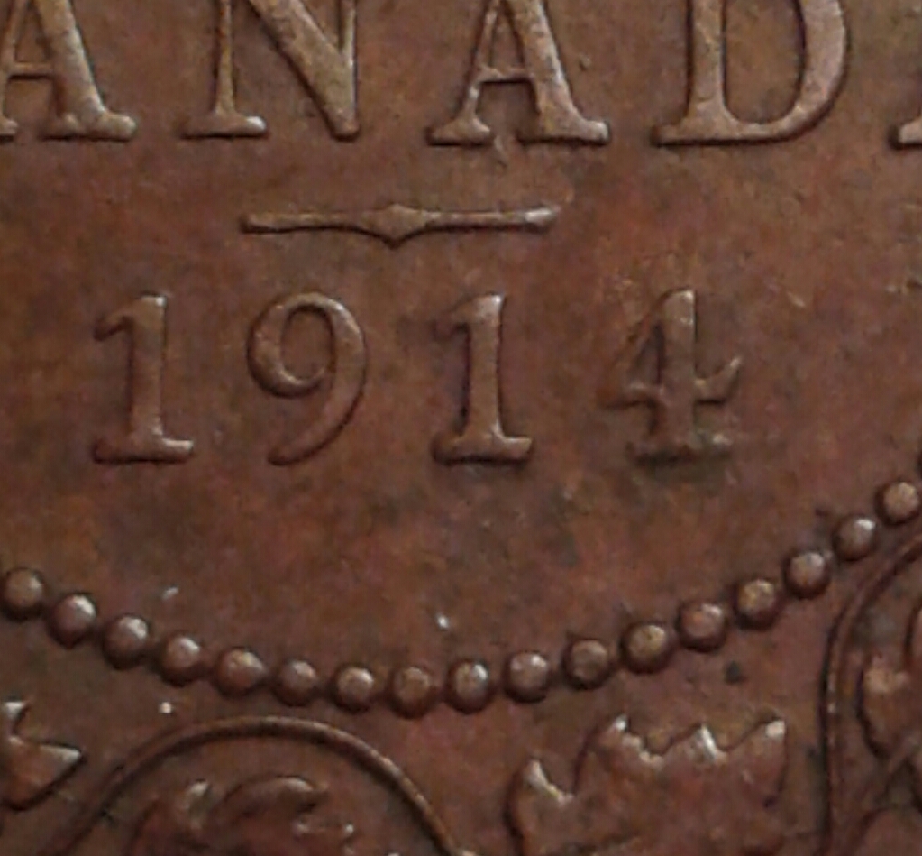 Plus 1914 Canadian penny is in a Extra fine grade one less empty hole