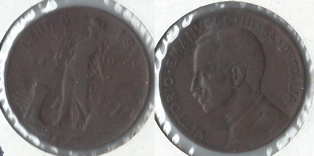 Italy really had it going on around the turn of the 20th century when it comes to coin design. Here are four that I added to my collection recently. Three 5 centesimi coins and one 2 centesimi. 1909 italy 5 centesimi.jpg 1913 italy 5 centesimi.jpg 1917 italy 2 centesimi.jpg 1918 italy 5 centesimi.jpg