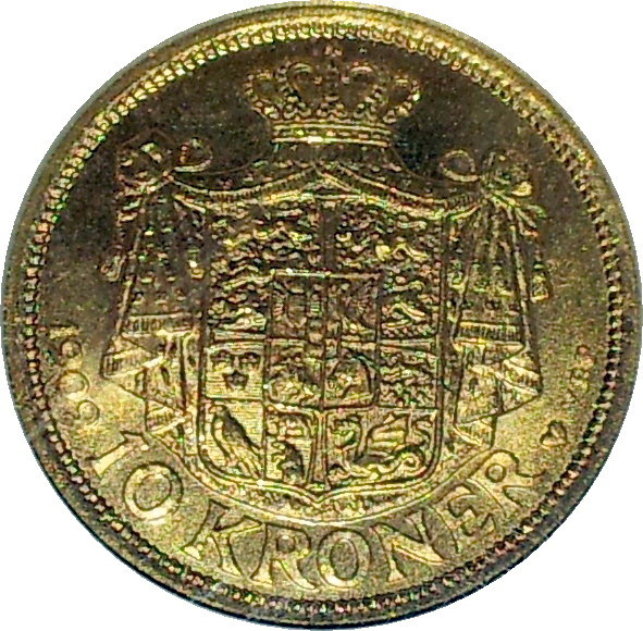 a little Denmark gold, 1909 Ten Kroner
