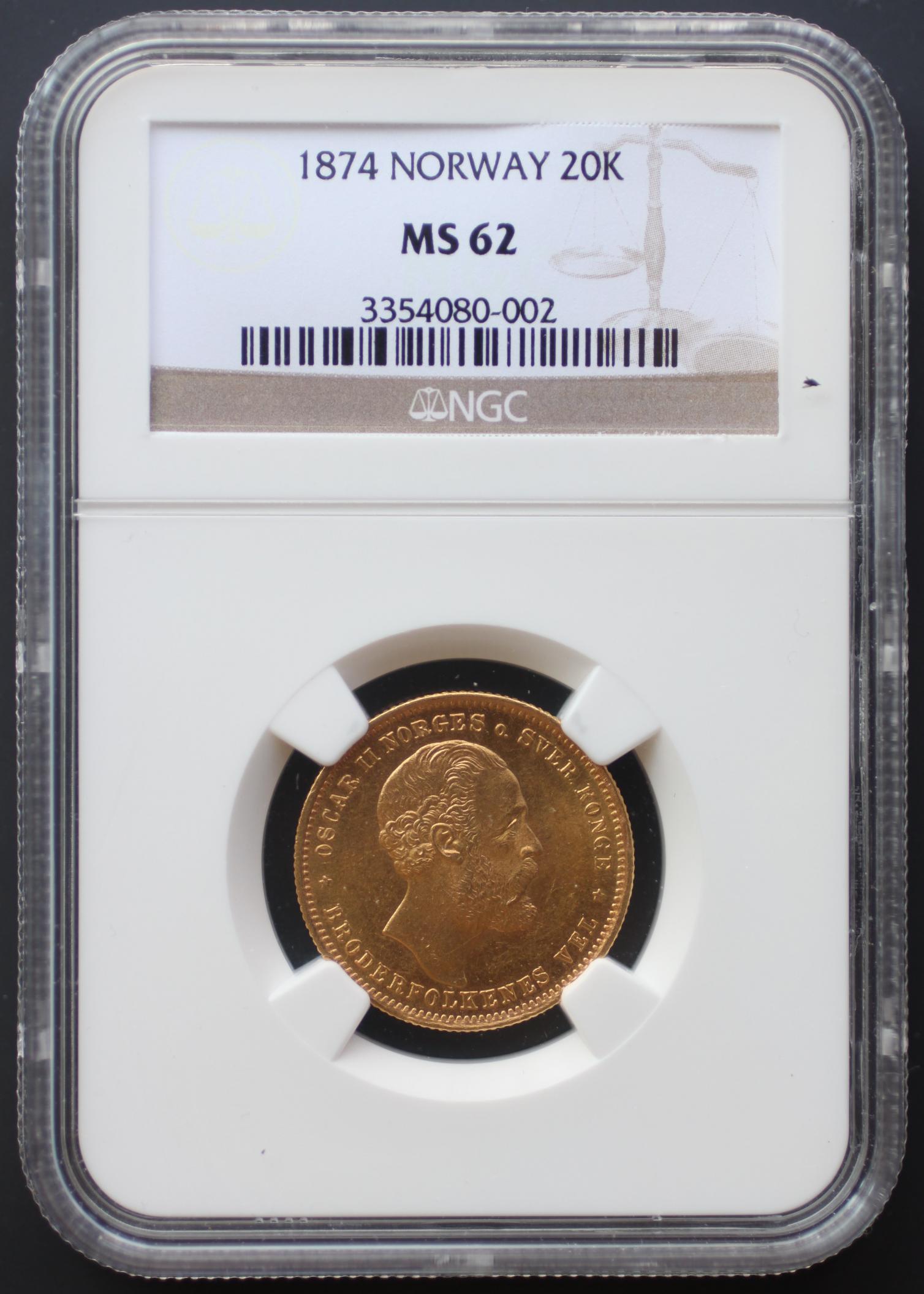 Newest coin added to the collection, from Clark Smith. Two year issue, slightly better date of the two. Looks considerably nicer than MS62 at first glance, but closer inspection suggests it's graded about right. This completes my Norweigan "mini" gold type collection. I already had the 1902 and 1910 Norway 20 Kronors, both in MS65. Would love to have gotten this one in MS65 but the price is double what this one was.
