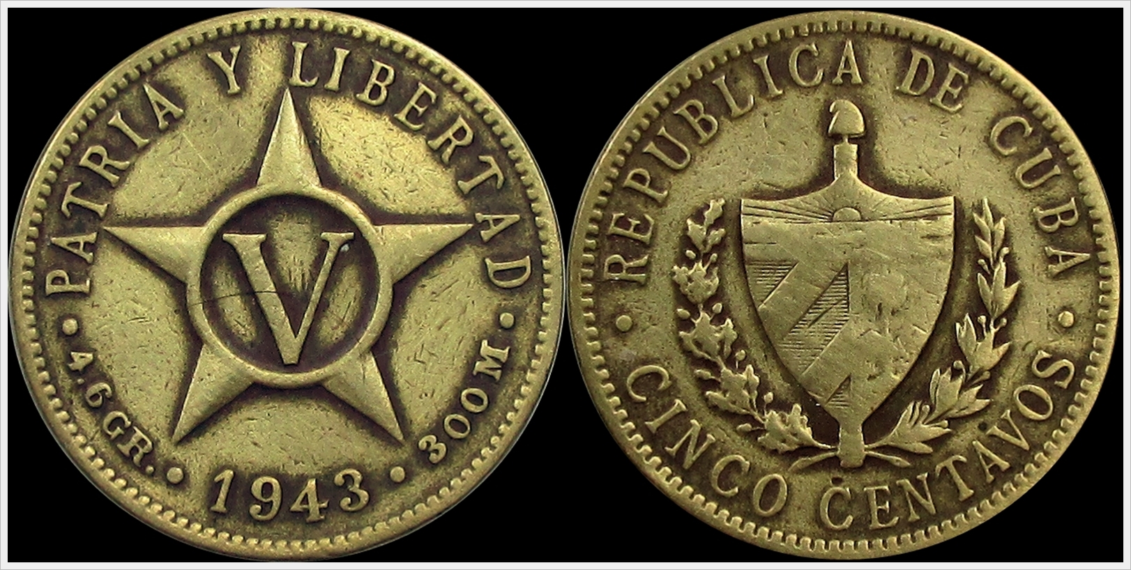 1943 Cuba 5 Centavos Mintage 6,000,000, One year type