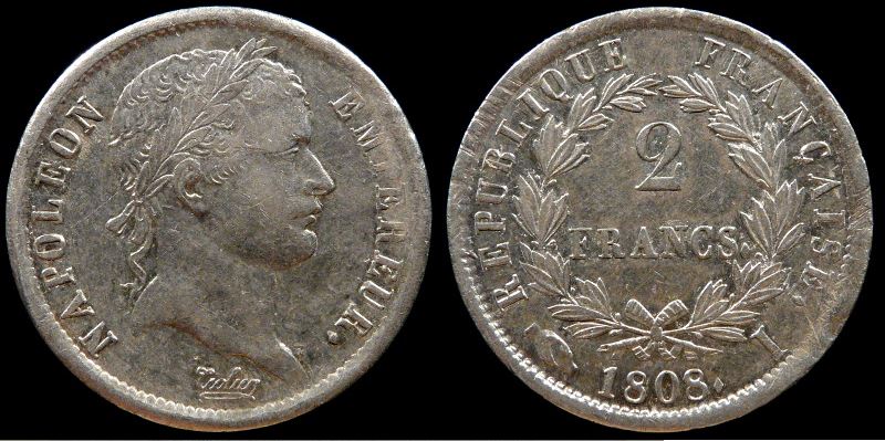 My first Foray into exploring the French Revolution period... France Napoleon Emperor 2 Francs 1 808-I Limoges mint Republic Rev AU55