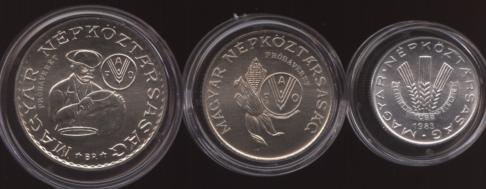 Thanks. I don't have particular interest in F.A.O. coins at large, however, this brings me up to 7 Hungarian F.A.O. patterns, just because they are of interest as significant patterns. This 3 piece set has the only minor commem and so is of interest, the 4 piece set from 1995 were intended to be the first circulating ultramodern commems but were not produced (I'm missing one of the four), and the 1981 10 forint pattern was a circulating commem and so is obligatory in my patterns set. My circulating business strikes set also does have the one circulating 1981 10 forint F.A.O. issue.
