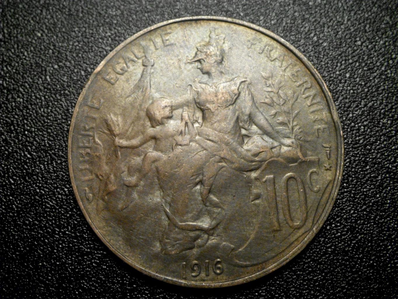 First a b-e-a-utifully toned 1916 France 10 Centimes. One of my favorite coins EVER. The two rim hits annoy me but I couldn't pass up the toning. :)