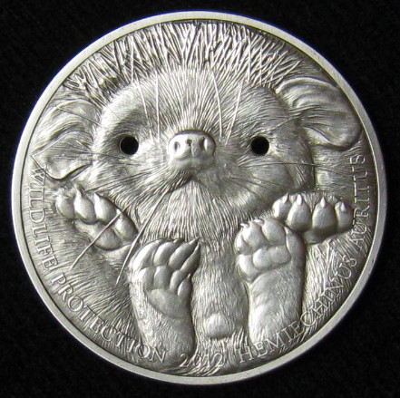 Another fairly recent acquistion. Whole bunch of these were for sale on eBay a few months back. Now only one, and priced at twice what the earlier ones sold for. Nothing in archives of recent sales either. I may be wrong, but my instincts tell me this will be one hot modern coin in a few years time.