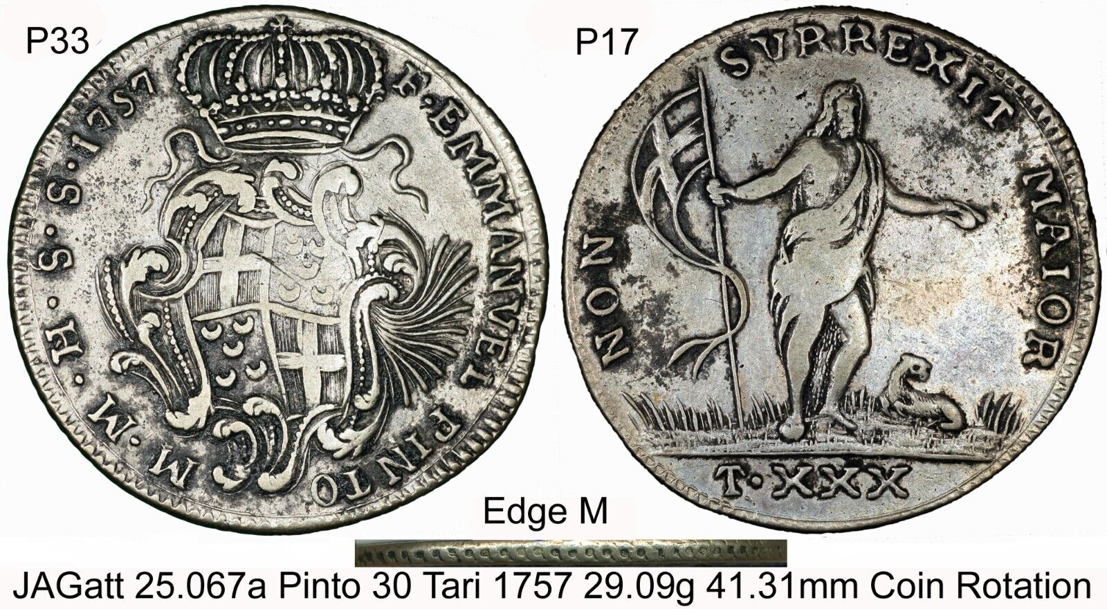 I have recently added 4 pieces that qualify. The 1st 2 are Malta 1757 30 Tari's. I have a thing for these and just purchased 2 of the scarcer varieties. The first one has edge writing and is one of 7 known.
