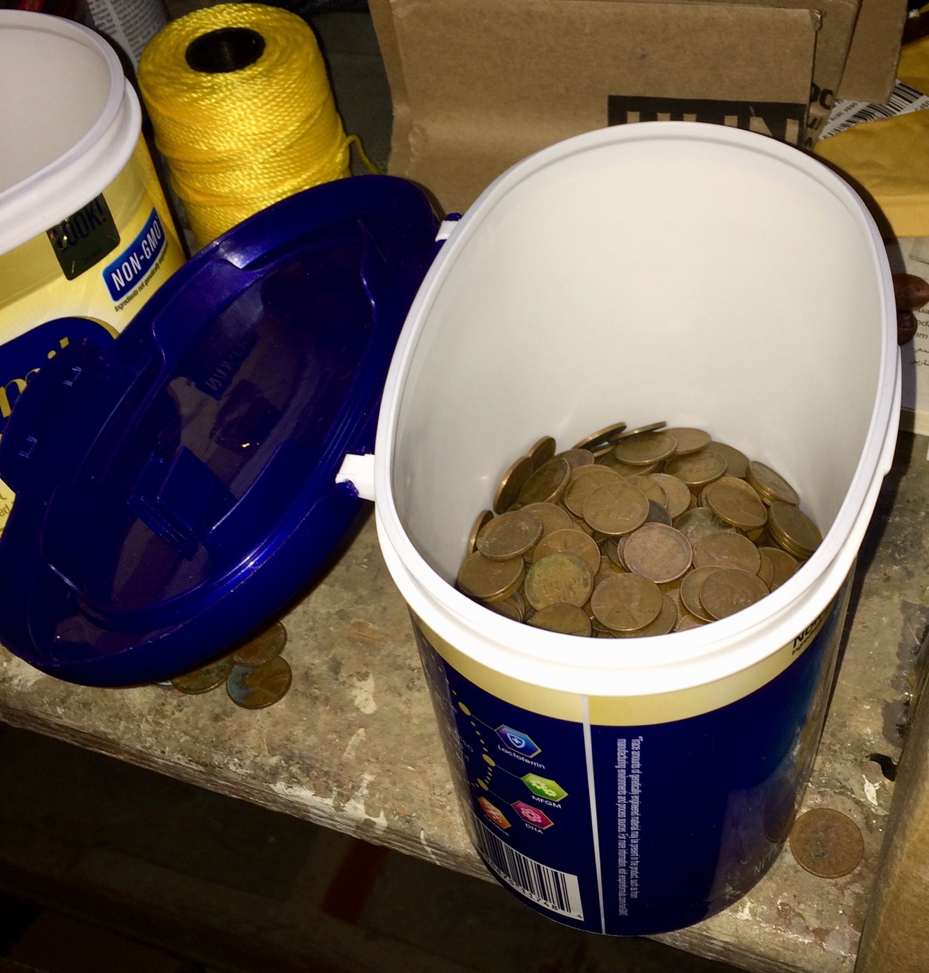 Good question. I paid one cent per wheat cent in that bin and one cent per coin in that plastic jug. So a few dollars there, I guess.
