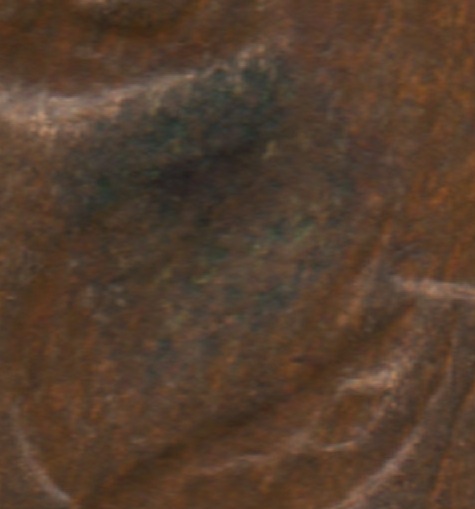 how can you tell if it is pvc or verdigris? Is there an easy way? Here is a high quality scan of just the area in question. Hopefully this can help tell. Thanks, RR