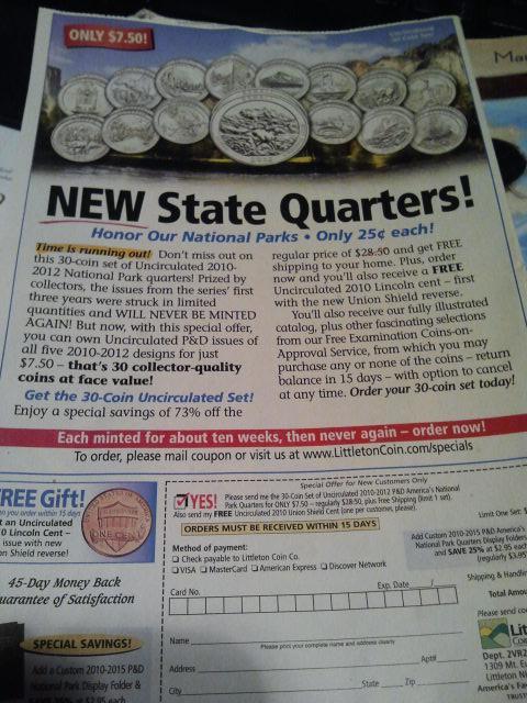 30 national park quarters for face value and free shipping? I don't see what there motive is if they are loosing money on this.